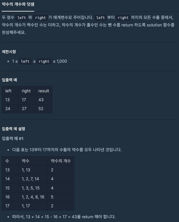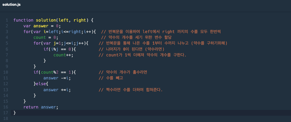 문제를 풀고 다른 풀이드를 찾아봤을 때 꽤 충격을 받았다.. 이렇게 간단한 풀이가 있다니 제곱근이 정수면 약수의 개수는 홀수이다. 중학교 수학인 약수의 개수를 구하는 공식을 난 잊고있었다..
