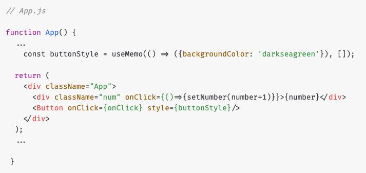 ์ด๋ useMemo๋ฅผ ์ฌ์ฉํด์ ๊ฐ์ฒด๋ฅผ ๋ฉ๋ชจ์ด์ ์ด์ ํด์ค์ผ๋ก style props์ ๋ํด ๋์ผํ ์ฐธ์กฐ๋ฅผ ์ ๊ณตํ ์ ์๋ค.