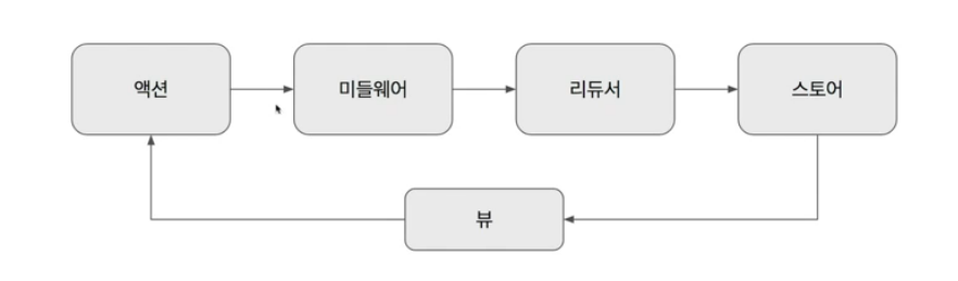 • 미들웨어는 옵셔널이다. 기능을 넣었다면 미들웨어가 중간에 처리를하고 미들웨어가 없다면, 액션은 바로 리듀서로 넘어간다.