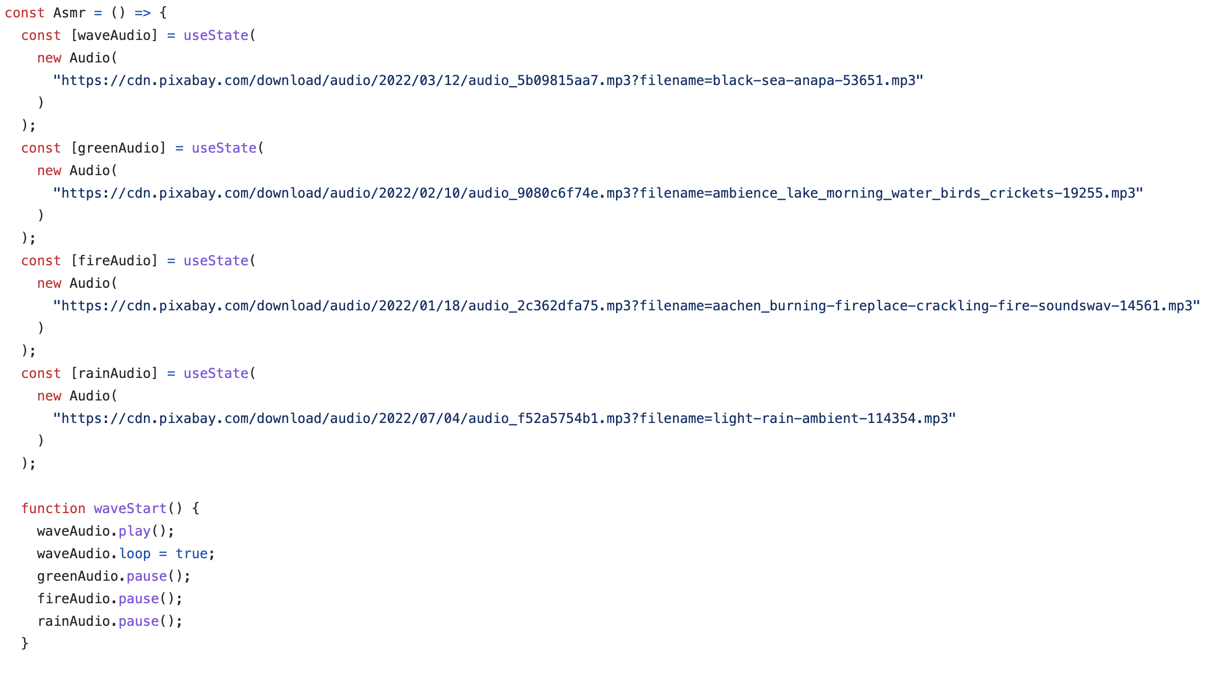 audio.play()가 최초엔 실행이 되지만 audio.pause() 함수가 정상적으로 작동하지 않는다.