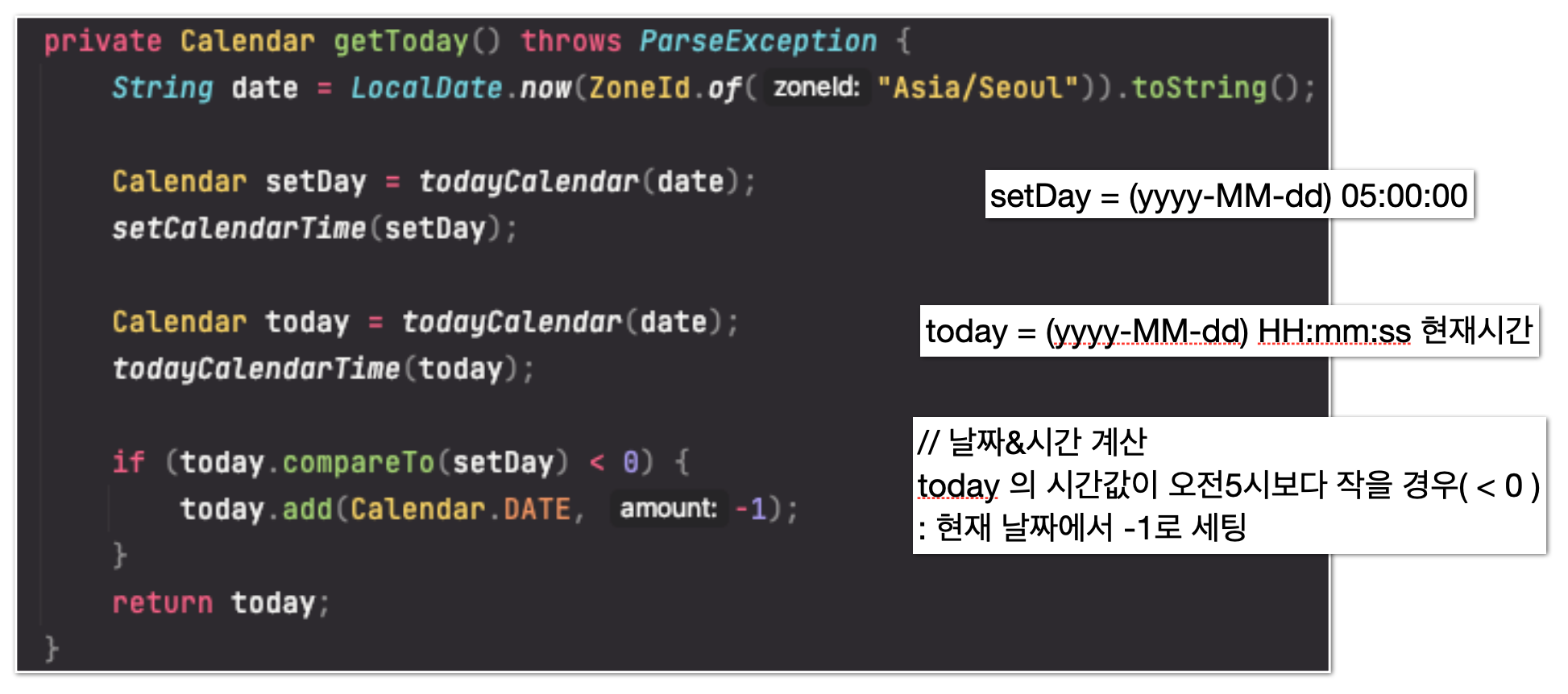 공부시간 기록서비스이다보니 자정을 기준으로 하루를 초기화하게되면 유저가 공부하는 중간에 체크인/체크아웃을 다시 해줘야하는 번거로움이 발생하는 경우가 많음 (팀회의를 거쳐 항해의 시스템과 동일한 새벽5시에 하루초기화 결정)