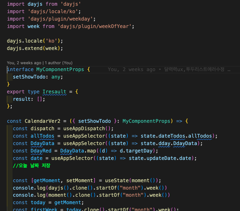 🌧 day.js에서 moment.js처럼 week()을 사용하려면 플러그인을 사용해 확장하여야한다.