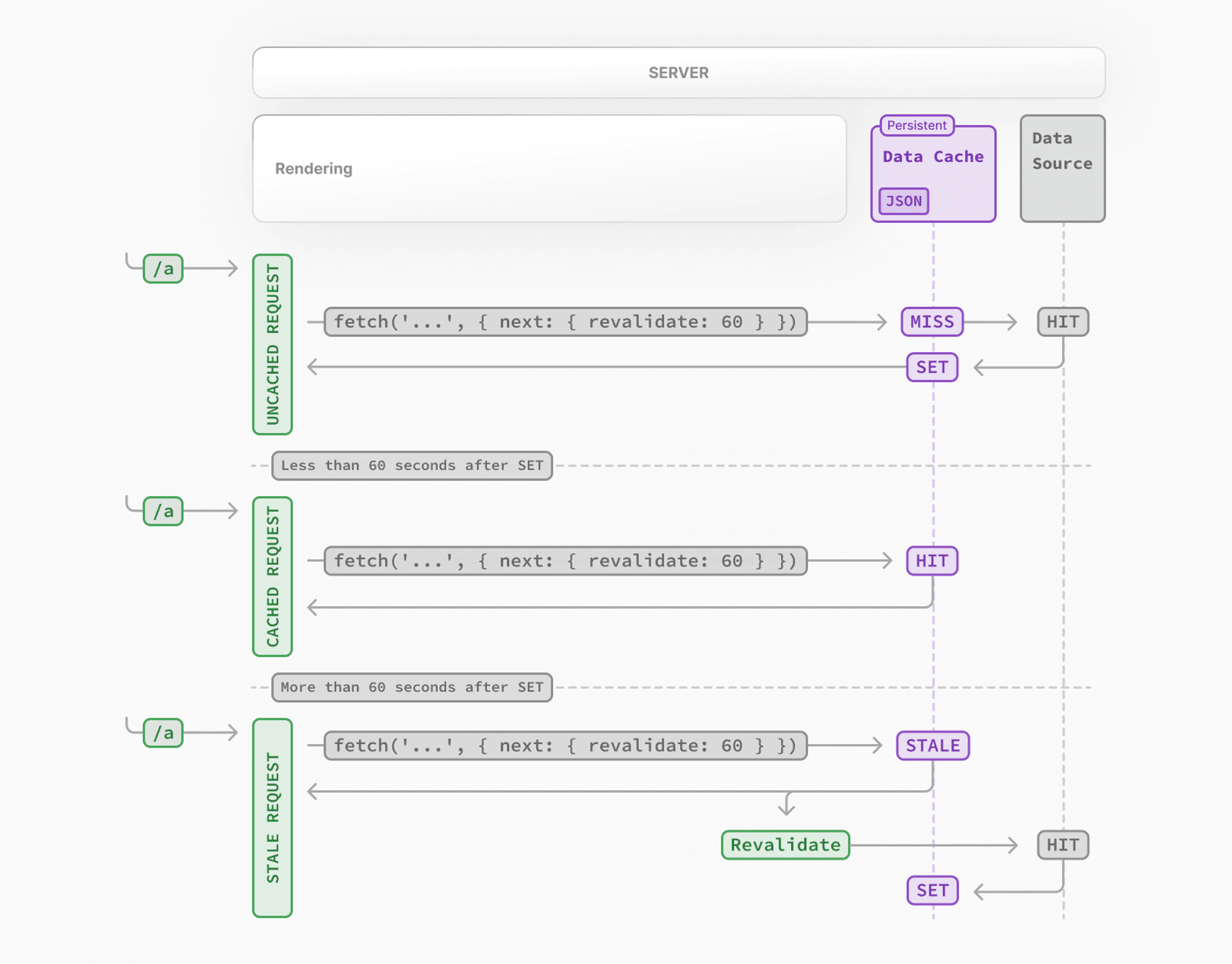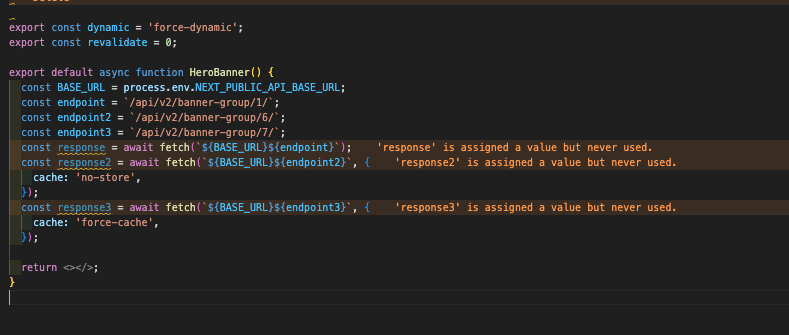 - Conflicting options such as { revalidate: 0, cache: 'force-cache' } or { revalidate: 10, cache: 'no-store' } will cause an error.