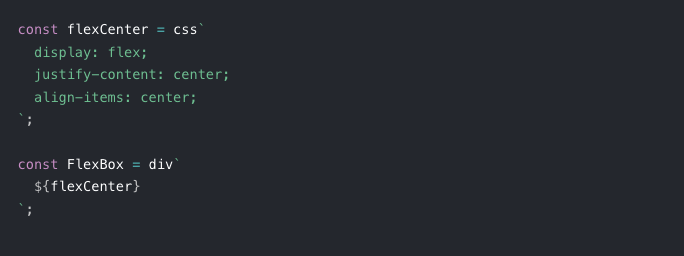 const ์ปดํฌ๋ํธ๋ช = styled.์คํ์ผ์ปดํฌ๋ํธ๋ช ์คํ์ผ ๋ฃ๊ธฐ...๋ฌธ๋ฒ์ผ๋ก ๋ง๋ค์ด์ง๋๋ค. ๊ธฐ์กด์ ์๋ ์คํ์ผ์ปดํฌ๋ํธ๋ฅผ ์์๋ฐ์ ์ฌ์ฌ์ฉํฉ๋๋ค.