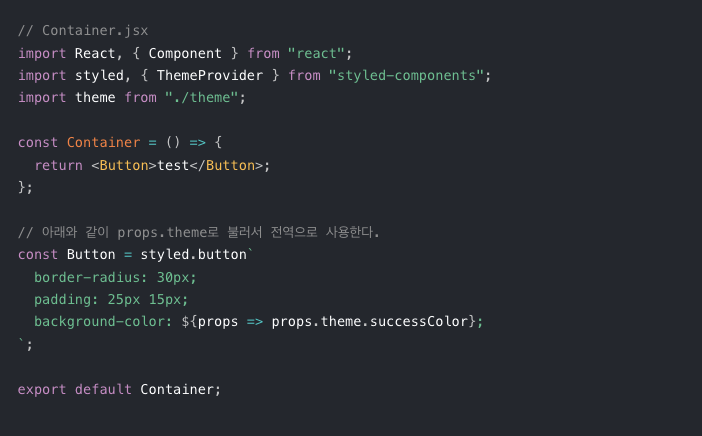 2.ThemePrivider๋ฅผ ํ๋ก์ ํธ์ root dir์ importํ๊ณ ์๋์ ๊ฐ์ด ์ ์ํ๋ค